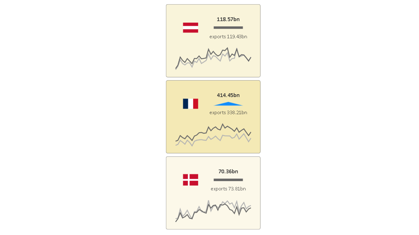 You want KPI cards to be an active part of your interactive dashboard? Use KPI Matrix. Users can filter data by selecting one or multiple cards, rows or columns.