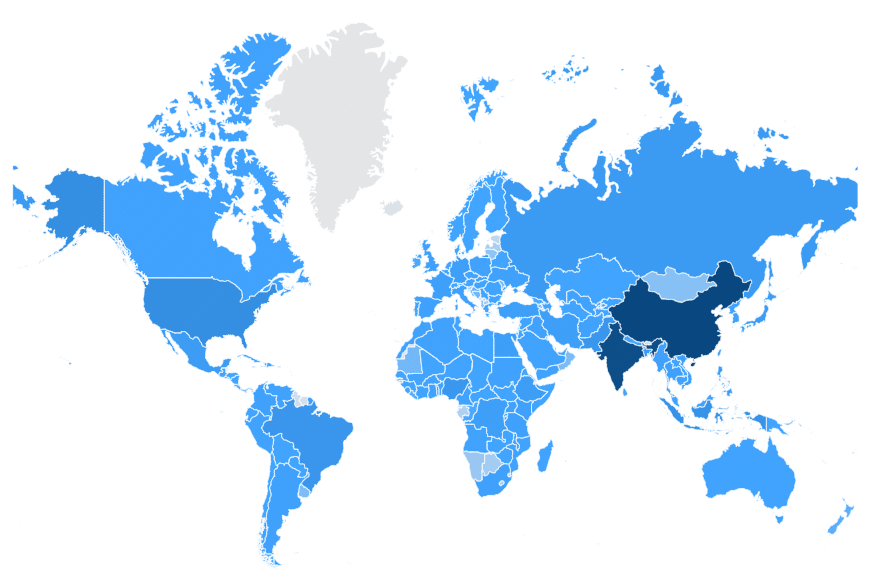 Here is an example. The countries are colored by their population: