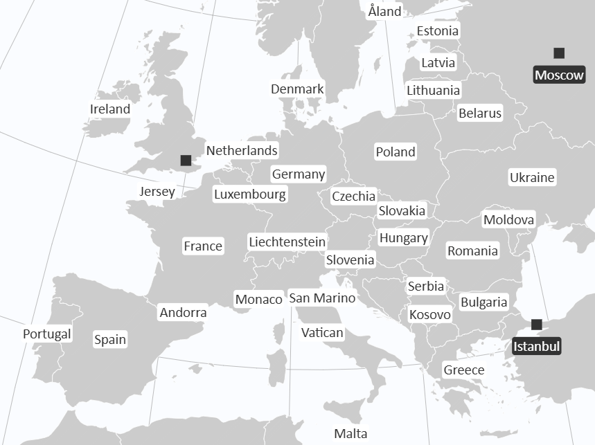 To project points on a map (e.g., cities or your company's locations), provide the point's geographic coordinates in the form [latitude|longitude]. For example, to display Berlin, Germany, on the map, use the measure value [52.52|13.40], and for New York City, use [40.75|-73.98].