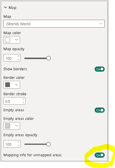 This will display the mapping information for all areas of the map that could not be mapped using the provided "Location" data.