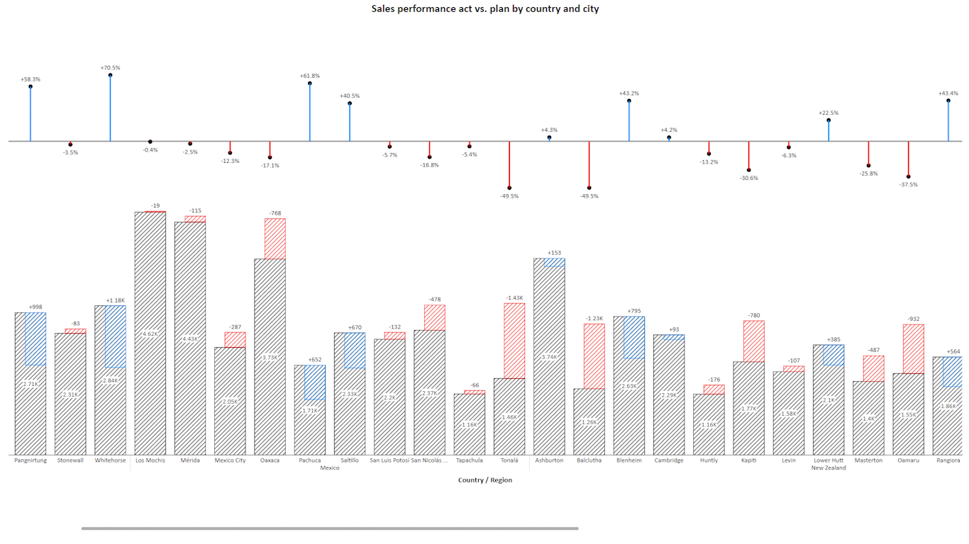 Built in accordance with the International Business Communication Standards (IBCS®), Variance Chart supports advanced features like: